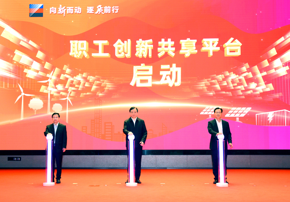 浙江省人大常委會(huì)副主任、省總工會(huì)主席劉忻,浙能集團(tuán)黨委書(shū)記、董事長(zhǎng)劉盛輝,浙能集團(tuán)黨委副書(shū)記、總經(jīng)理倪震出席會(huì)議并共同啟動(dòng)浙能職工創(chuàng)新共享平臺(tái)。