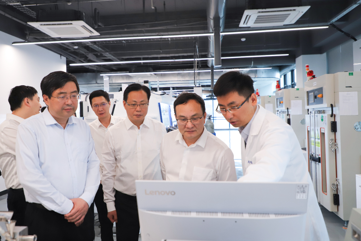 在白馬湖實驗室展廳,詹敏一行詳細(xì)了解了實驗室空間規(guī)劃布局建設(shè)、核心技術(shù)研發(fā)攻關(guān)及科技成果轉(zhuǎn)化孵化等情況。隨后,他實地參觀了固態(tài)電池等實驗室,并與科研人員面對面交流。