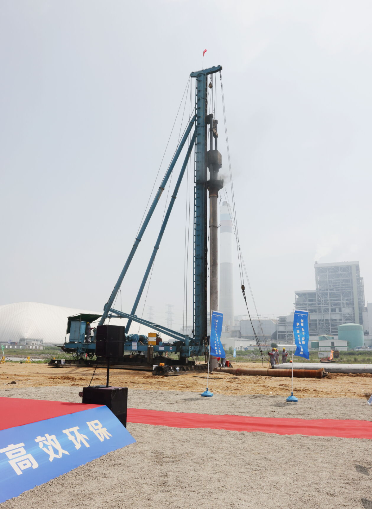 本網訊 6月13日上午10時,寧波石化開發區嵐山動力中心項目舉行開工儀式,浙能鎮海發電公司、中石化鎮海煉化有限公司、中浦集團代表及各參建單位代表共同見證這一時刻。隨著第一根工程樁在樁錘的重擊下穩穩地扎入土中,工程建設進入全面施工階段。