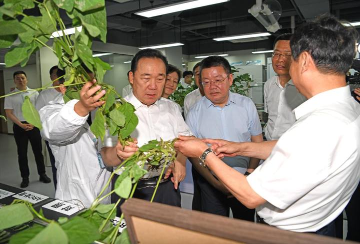 湘湖實驗室是我省唯一一家農(nóng)業(yè)領域的省實驗室,以農(nóng)業(yè)核心種質(zhì)資源生物制造為主攻方向,著力破解農(nóng)業(yè)領域重大科學與技術(shù)問題,突破農(nóng)業(yè)“卡脖子”關鍵核心技術(shù)。實驗室主任李培武院士向王浩介紹了近兩年來的研究成果,特別是在生物固氮、小麥赤霉病防治等方面取得的突破。王浩給予充分肯定,要求加強科研成果轉(zhuǎn)化和運用推廣力度,為全省生態(tài)高效農(nóng)業(yè)發(fā)展提供強大科技支撐。他指出,實現(xiàn)農(nóng)業(yè)現(xiàn)代化,科技創(chuàng)新很關鍵。要深入實施“科技強農(nóng)、機械強農(nóng)”行動,建好用好湘湖實驗室并發(fā)揮好省農(nóng)業(yè)科創(chuàng)平臺的關鍵性作用,大力推進農(nóng)業(yè)核心技術(shù)創(chuàng)新,持續(xù)加強在農(nóng)業(yè)生物技術(shù)、綠色智慧高效農(nóng)業(yè)生產(chǎn)技術(shù)、農(nóng)產(chǎn)品質(zhì)量與生命健康等新興交叉領域科技研發(fā)力度,力爭盡快取得一批標志性成果,實現(xiàn)農(nóng)業(yè)科技自立自強。在謝徑安·傳化農(nóng)創(chuàng)村,王浩走進農(nóng)業(yè)科創(chuàng)中心數(shù)字種苗工廠育種大棚,察看農(nóng)作物長勢,要求牢牢依靠科技和改革雙輪驅(qū)動,立足資源稟賦加快發(fā)展數(shù)字農(nóng)業(yè)、智慧農(nóng)業(yè)、綠色農(nóng)業(yè),進一步促進農(nóng)村一二三產(chǎn)業(yè)融合發(fā)展,更好帶動農(nóng)民增收致富。
