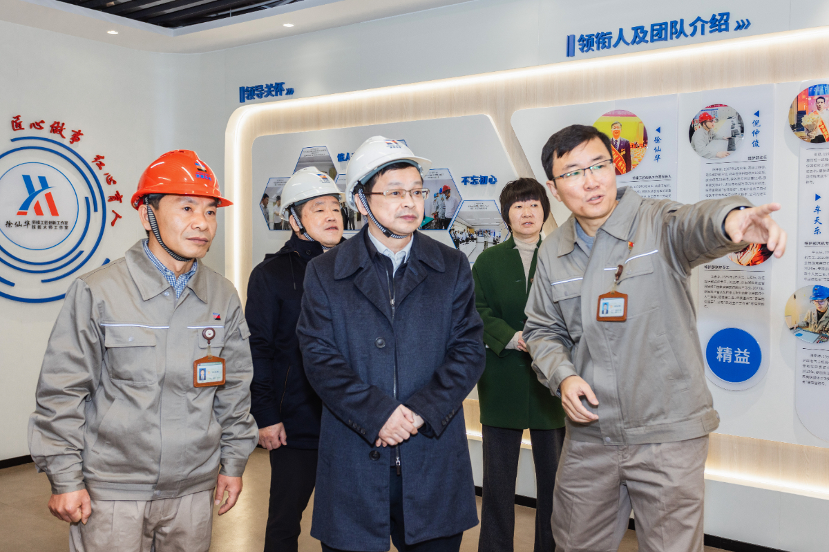 倪震一行到樂(lè)電徐仙華勞模(工匠)創(chuàng)新工作室參觀指導(dǎo)。 張立忠 攝