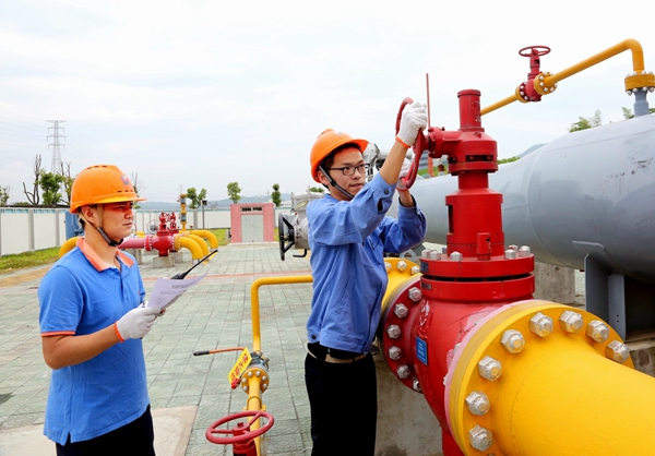 浙江省級天然氣管線寧海分輸站閥門開啟瞬間。鄭佳俊 攝