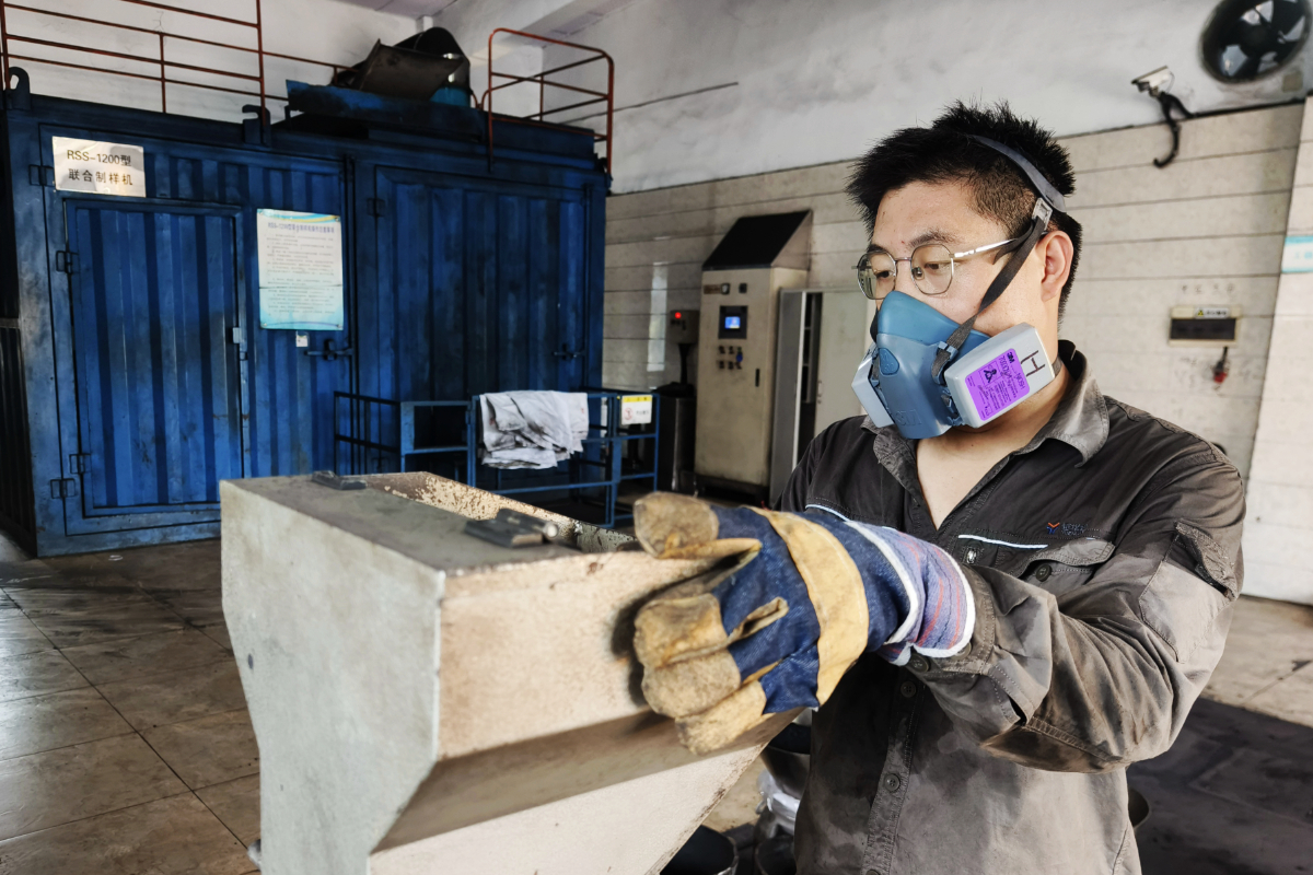 采制人員對煤樣進行破碎。 葉其彬 攝