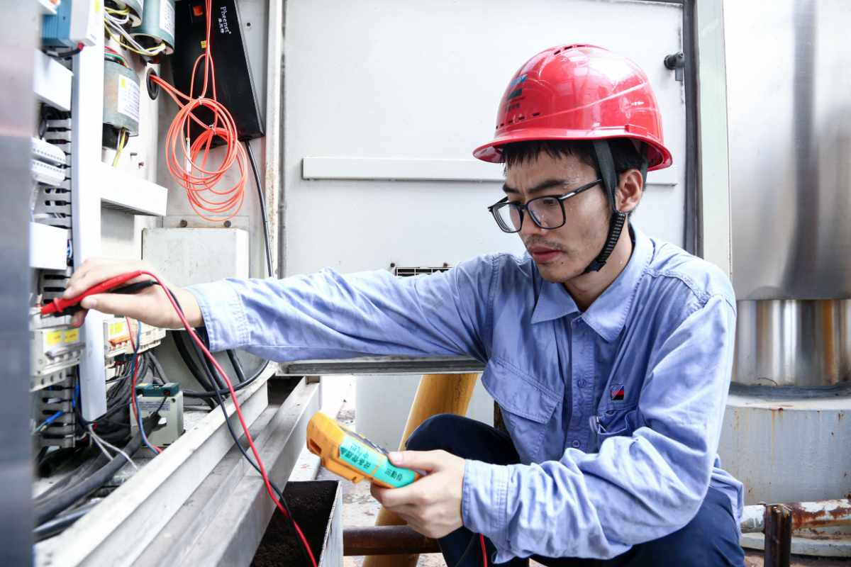 頭頂烈日,浙能燃氣平湖公司場站運行人員顧不得擦拭頭上的汗水,對場站設備進行全方面的維護和巡檢。 包融融 攝