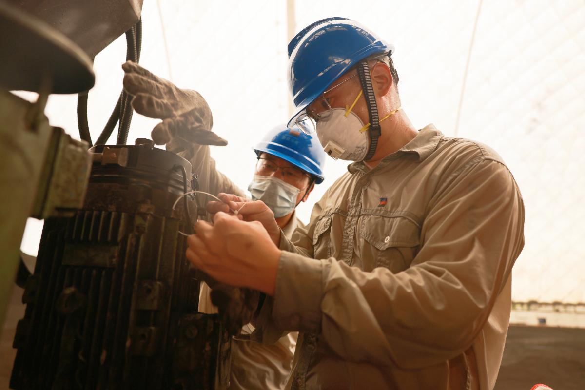 浙能樂電燃料檢修人員衣衫盡濕,牢牢守住燃煤保供防線。 陳清瑜 攝