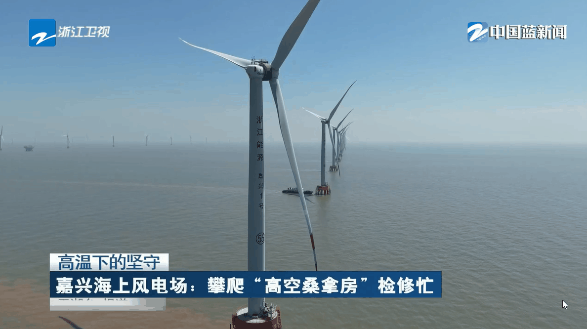 9月8日,浙江衛(wèi)視《浙江新聞聯(lián)播》報(bào)道,在連日晴熱天氣與全省用電高位運(yùn)行的情況下,浙能嘉興1號海上風(fēng)電場風(fēng)機(jī)維護(hù)人員高溫下?lián)屪ゴ翱谄冢凇昂I细呖丈D梅俊眱?nèi)忙于維護(hù)檢修,用汗水守護(hù)綠色電能的脈搏,以實(shí)干奮斗踐行能源高質(zhì)量發(fā)展戰(zhàn)略。