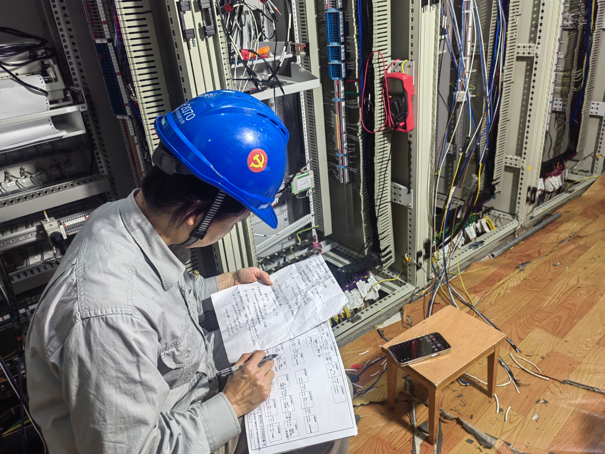 電子室是迎峰度夏的另一個戰(zhàn)場。從端子到圖紙,電氣女將陳涌君的手就是連接兩者的橋梁。她將復雜的電氣線路化為一條條整齊羅列的線索,密密麻麻的圖紙記滿了檢查的要點,指尖的繭記錄著她分毫析厘的專注。對她來說,經(jīng)手的每一個數(shù)據(jù)都是維系安全的重要密碼,一個都不能出錯。