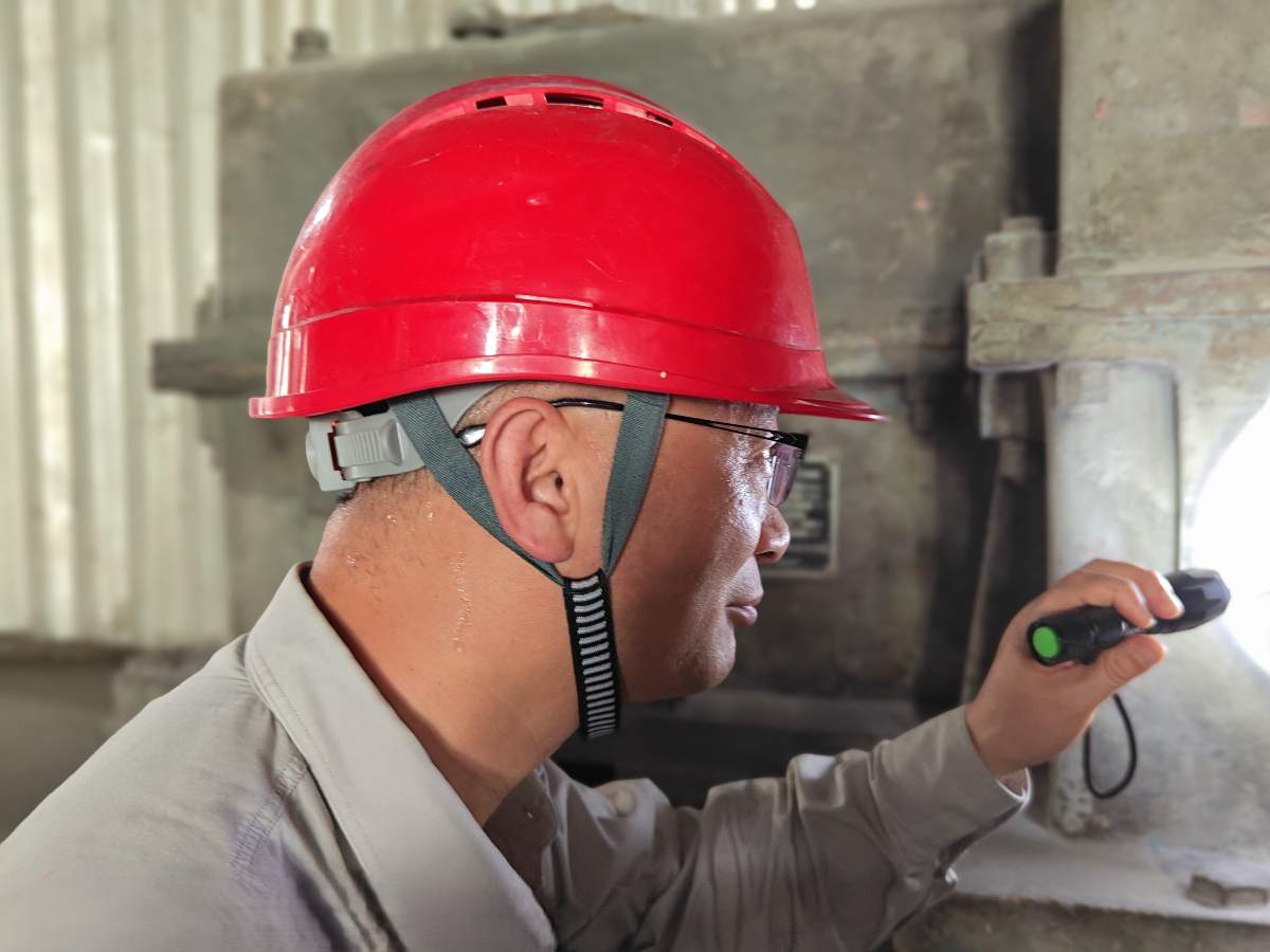 黃永杰的一日工作通常從鍋爐設(shè)備的巡檢開始。他目光如炬,不放過每一個(gè)隱蔽的細(xì)節(jié)。在震耳欲聾的轟鳴聲中,他俯身、側(cè)耳、觸摸、觀測(cè),對(duì)每一處管道連接、每一組受熱面、每一臺(tái)附屬設(shè)備細(xì)致檢查。高溫扭曲了空氣,卻從未模糊他堅(jiān)守的視線;汗水模糊了雙眼,他用手背一抹繼續(xù)前進(jìn)。