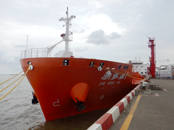 ▲ “浙能油1”輪滿載1.1萬噸0號(hào)柴油南下上海