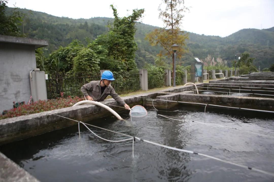 灘坑水電站魚類增殖站工作人員照料魚苗